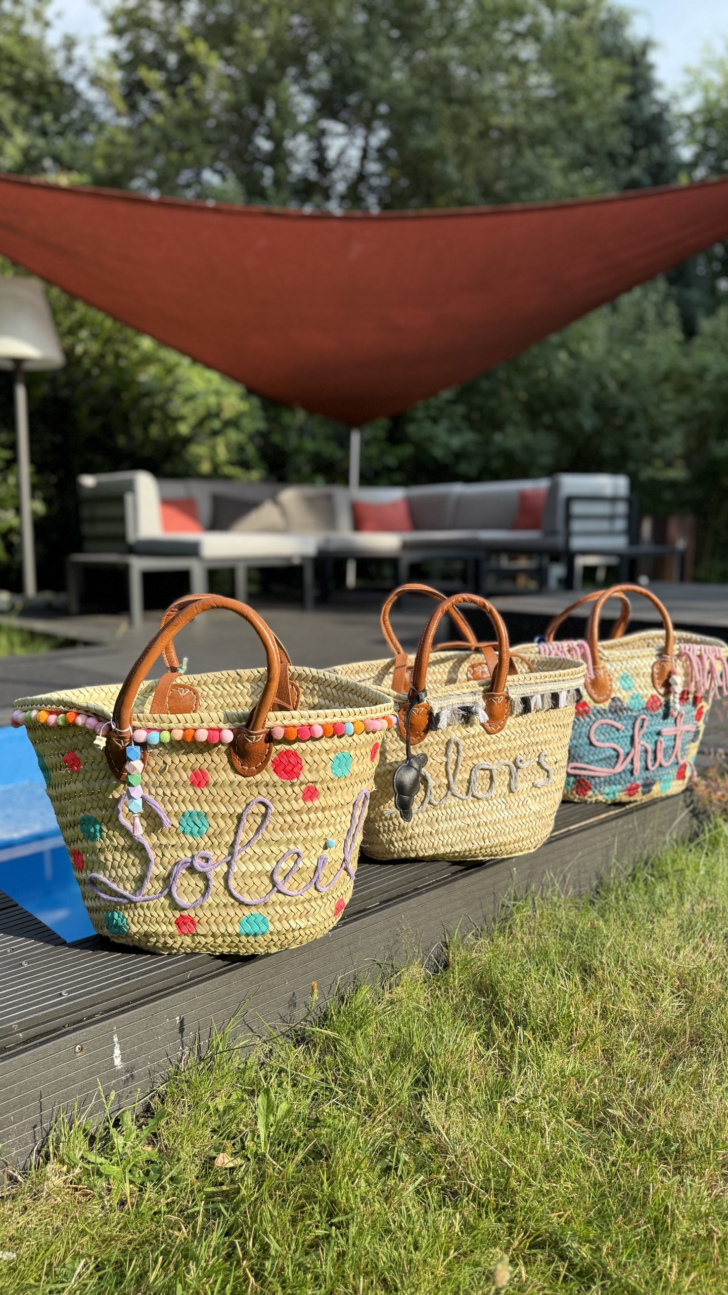 Mit Stoffmalfarben, Schablonen, Pompoms, Borten und vielem mehr verleihst du einer schlichten Korbtasche deinen ganz eigenen Look. Ob Boho, elegant oder verspielt – deiner Fantasie sind keine Grenzen gesetzt!